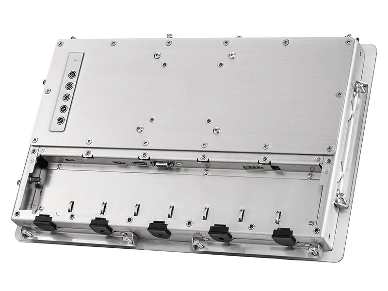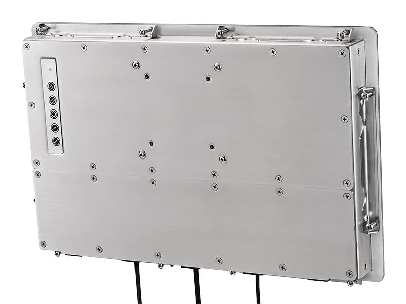 The 15.6 inch Anti-Glare touch panel has special Anti-Fog AR underside coating, increasing clarity, contrast, and durability. Further, because the 15.6" touchscreen display unit is water tight and air tight, ambient humidity will not affect the clarity or viewability because of the Anti-Fog AR underside coating. The 1579GNP 15 inch touchscreen monitor outperforms all automotive grade panels with a wider operating temperature range of -30C ~ 85C (-22F ~ 185F) and uses an IPS panel (In-Plane-Switching), which provides a wider viewing angle, consistent and accurate colors from all viewing angles, clearer images, and fast response times. A high contrast ratio of 1000:1 provides crisper images and vivid colors, even in direct sunlight. The ruggedized full IP69K and IP66 / NEMA4x enclosure is entirely made out of SUS316 Stainless Steel, ready for harsh environments whether it's long-term outdoor install or high tempreature sanitazation required by food industries.